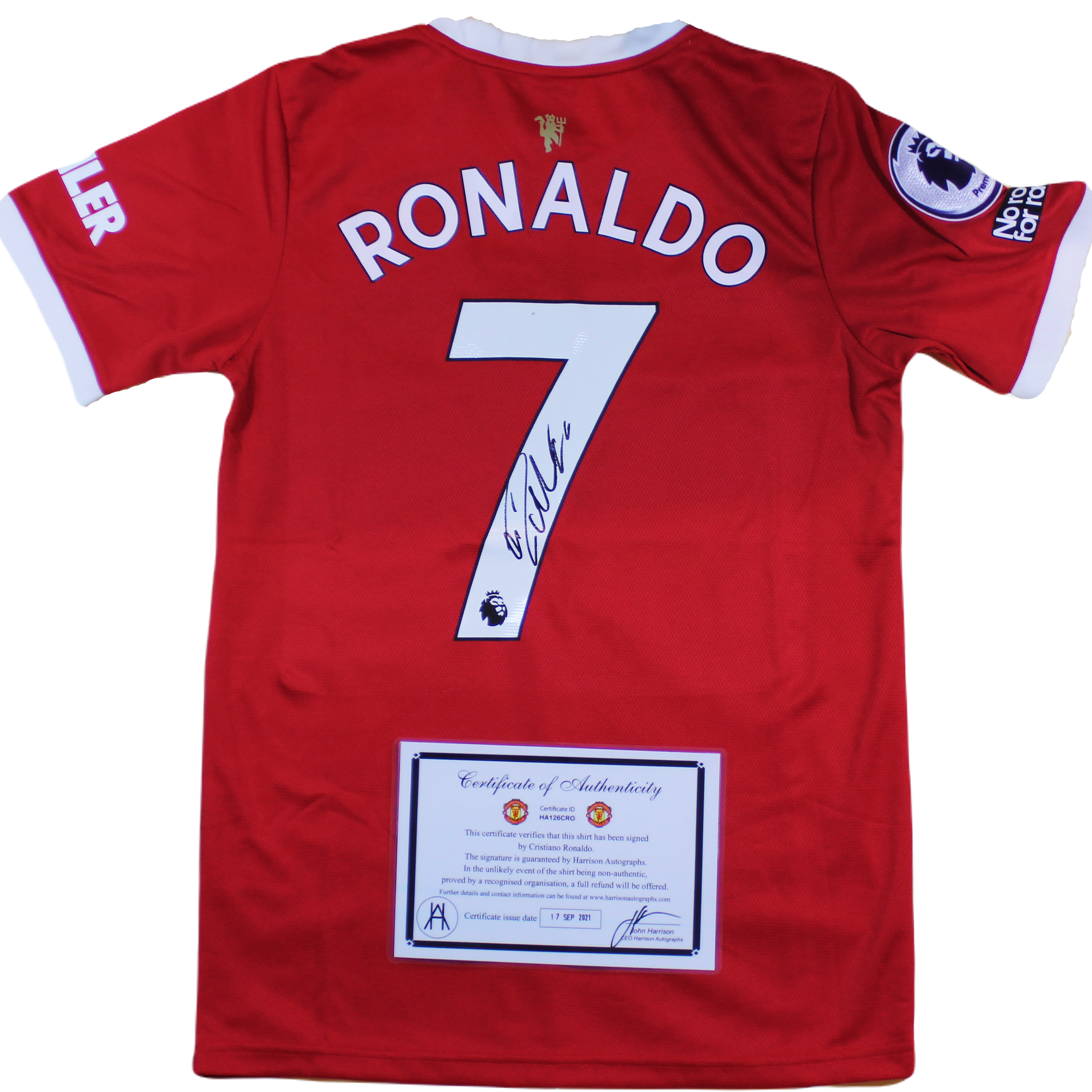 This Beautiful Brand New Officially Licensed Adidas 2020/21 Manchester United Jersey is Handsigned by the Legend Cristiano Ronaldo. Comes with a certificate of Authenticity from John Harrison autographs and is guaranteed to be 100% Authentic.
